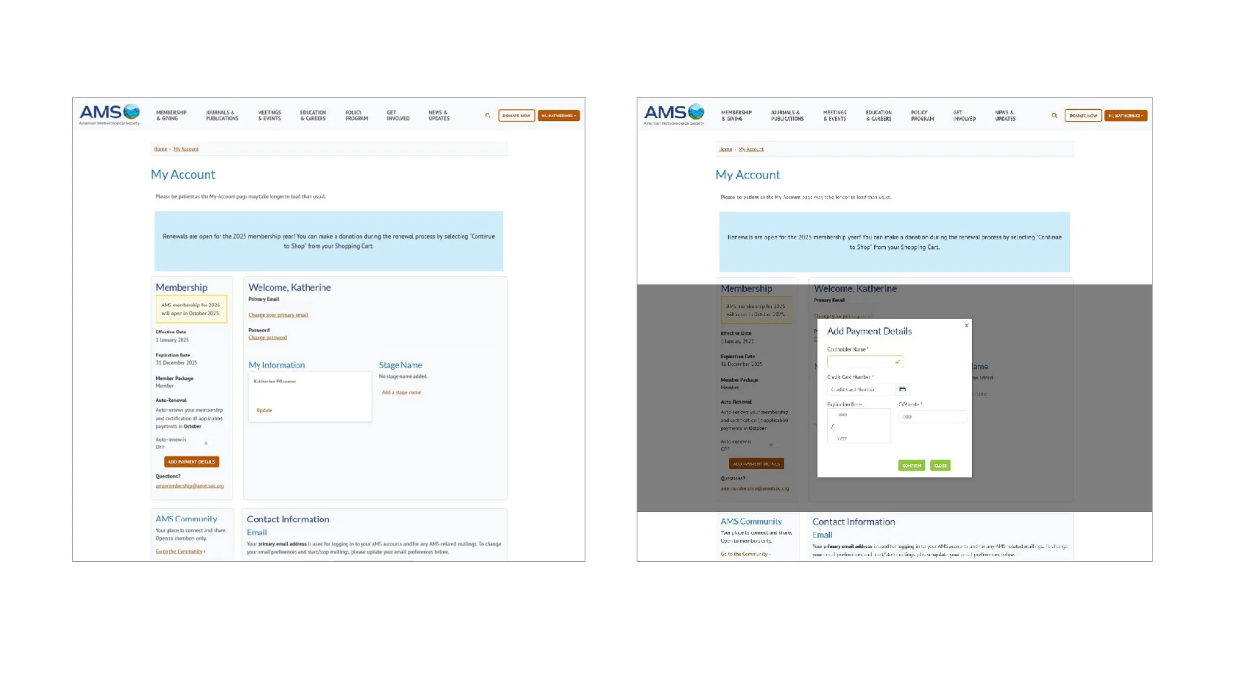 Through data gathered from ongoing member surveys and membership renewal trends, a need for auto-renewal and payment method storage features was identified by our Membership department. This case study explores the implementation of these features into our existing Account Management interface.