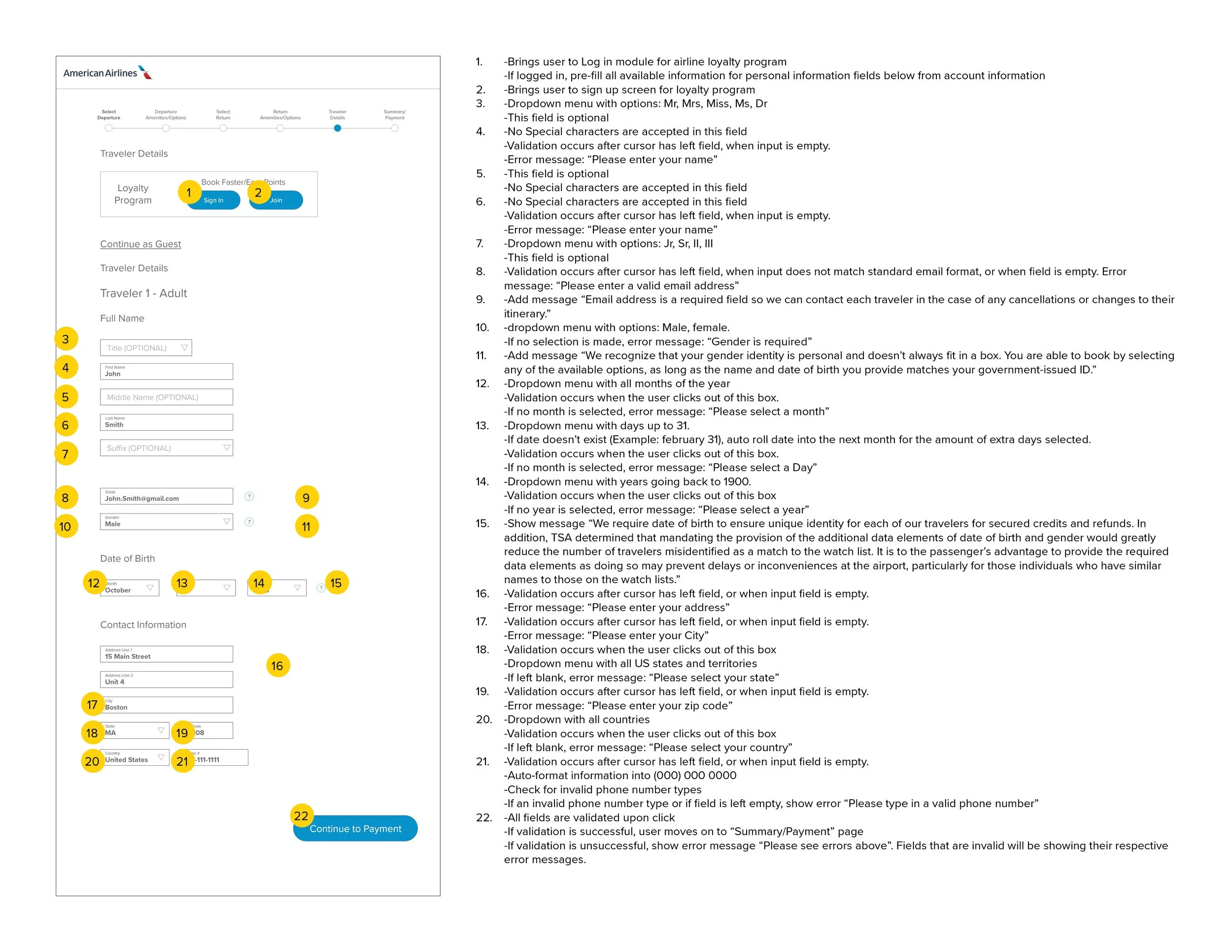 Once a final design was completed, annotations were added to the prototype detailing the functionality and behaviors of the product. All details a developer would need to build the product accurately were included.
