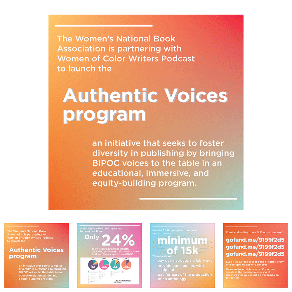 These social media graphics were created for the Women’s National Book Association as part of a fundraising campaign to support the